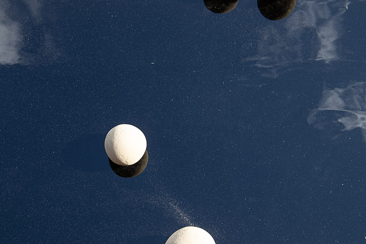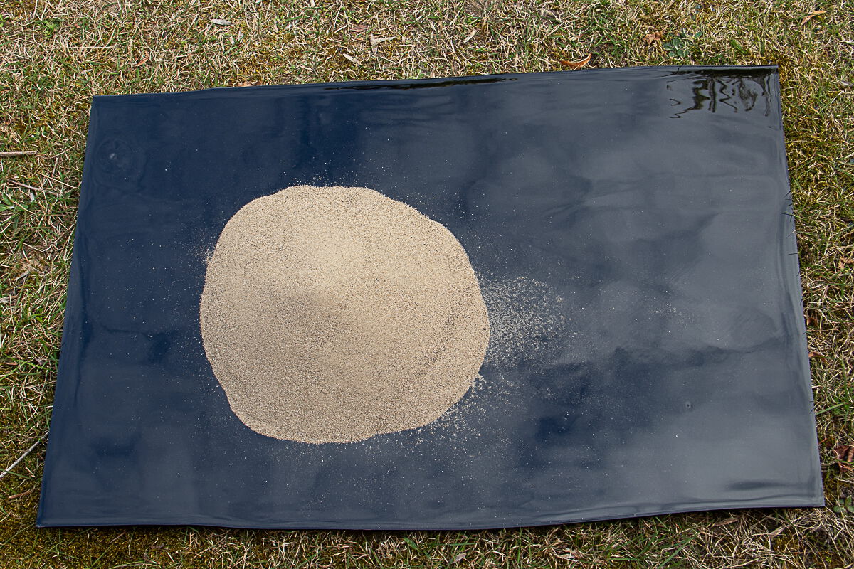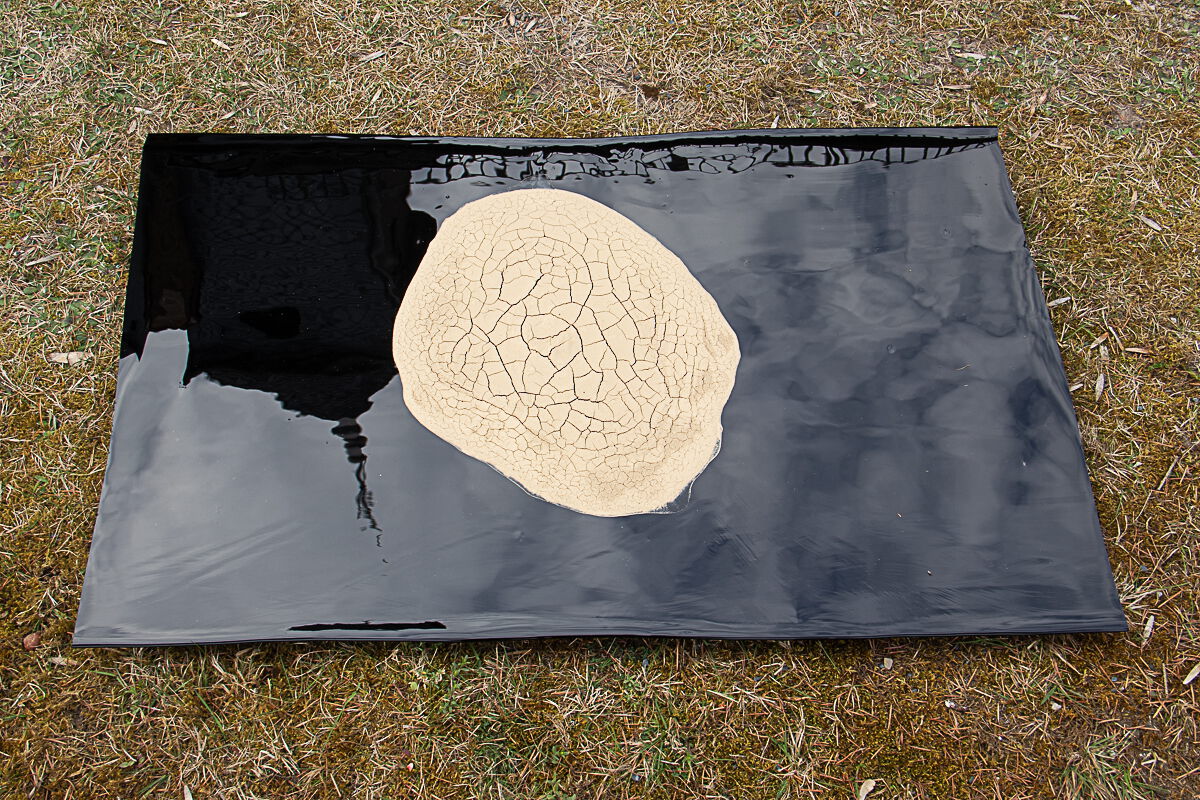 Der Boden ist gleichzeitig Ort für die Präsentation und Ressource zur Produktion der Arbeit. Glas entsteht durch Sand. Zusammen zeigen sie faszinierende Materialkontraste.